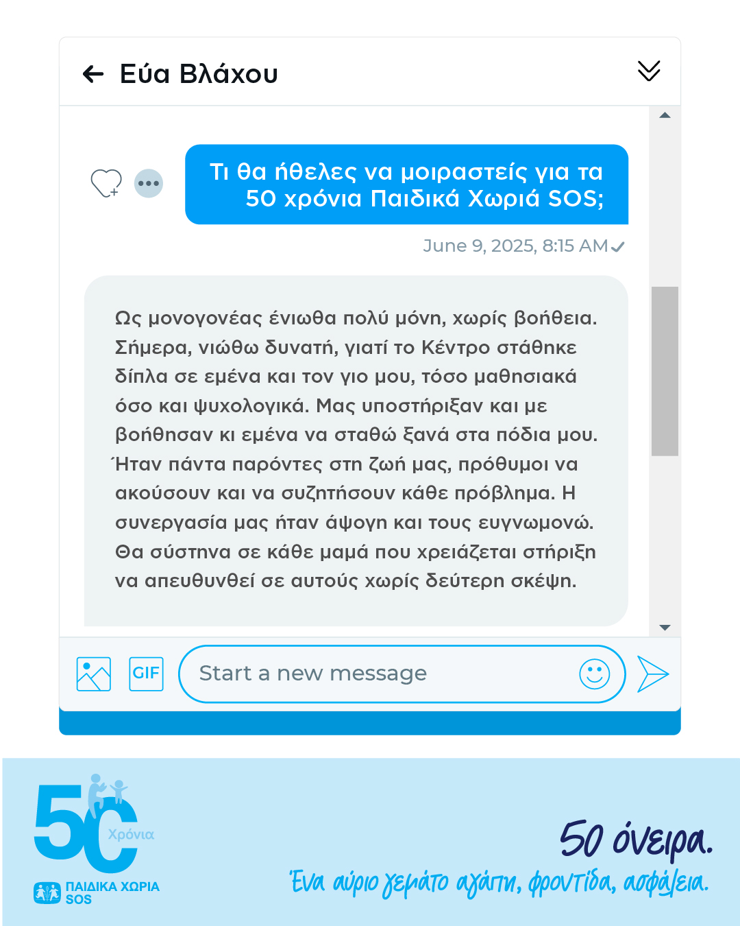 50 όνειρα. Ένα αύριο γεμάτο αγάπη, φροντίδα, ασφάλεια.