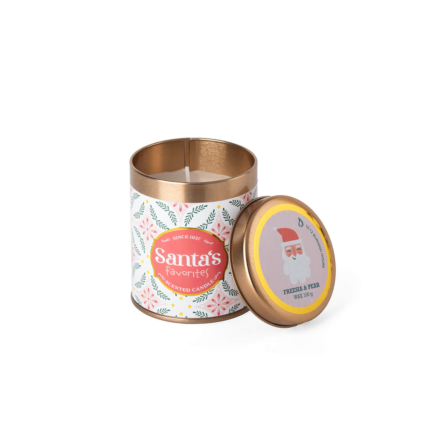 Κερί με άρωμα φρέζιας και αχλαδιού, σε λευκή συσκευασία με γκι