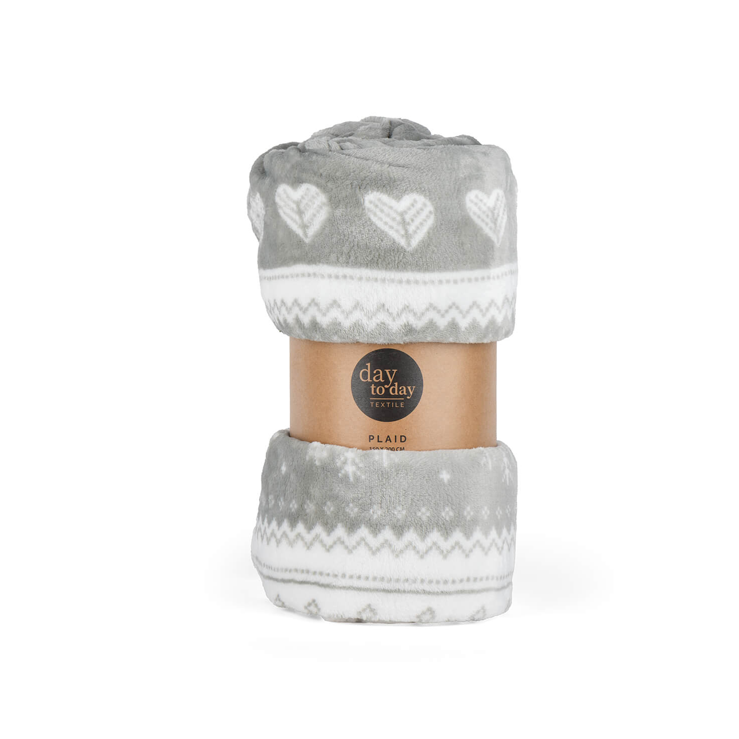 Γκρι κουβερτούλα fleece με λευκές λεπτομέρειες
