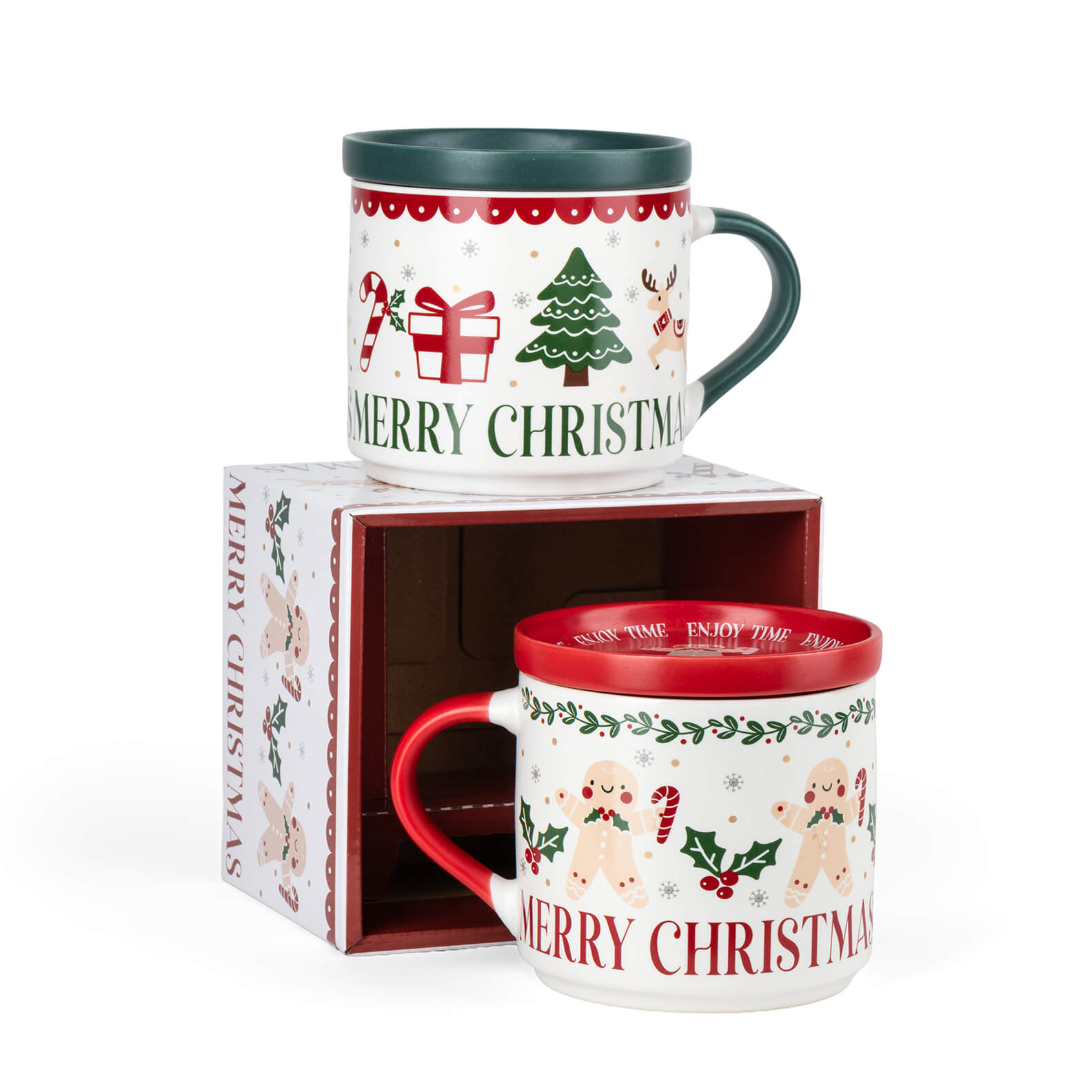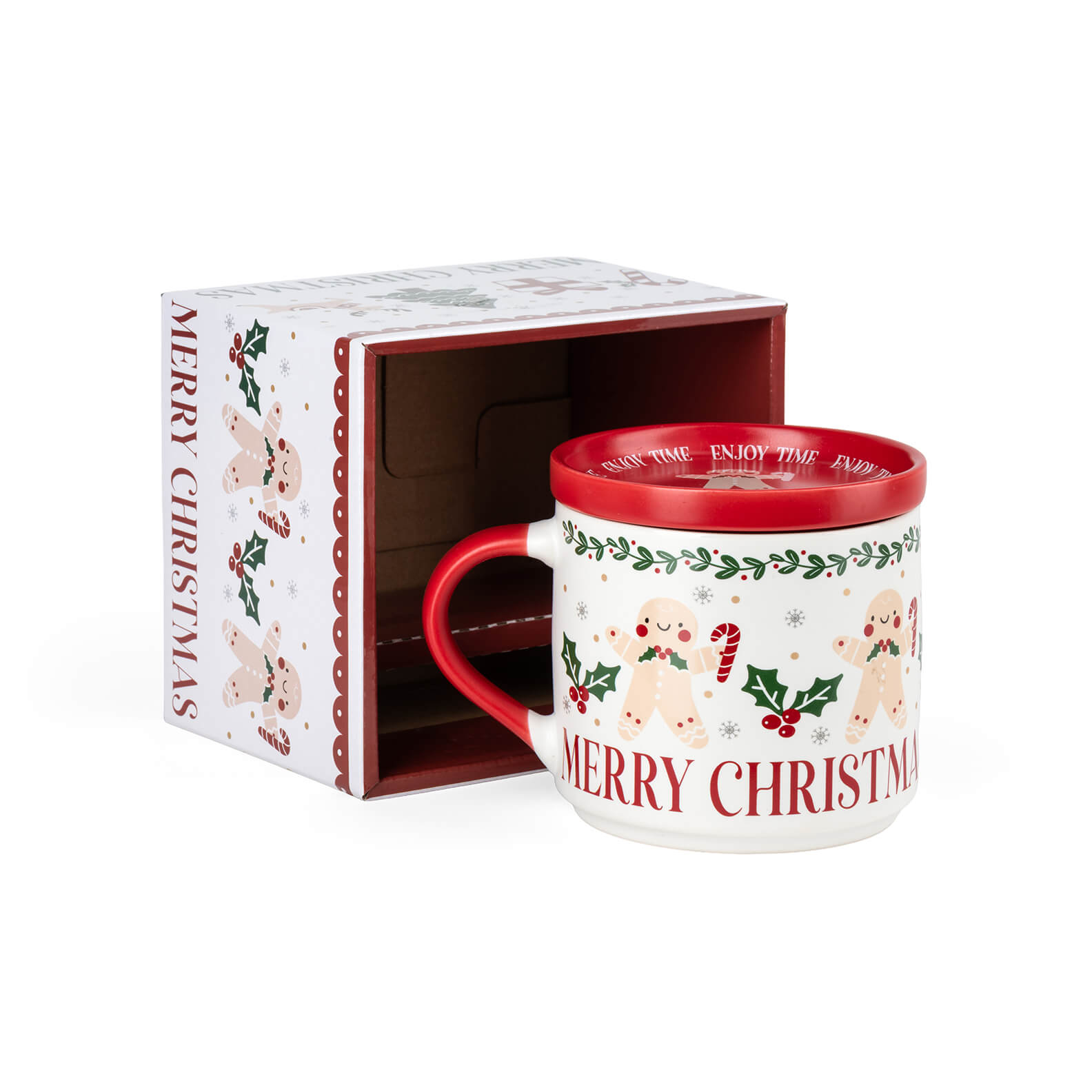 Χριστουγεννιάτικη κούπα με κόκκινες λεπτομέρειες και καπάκι