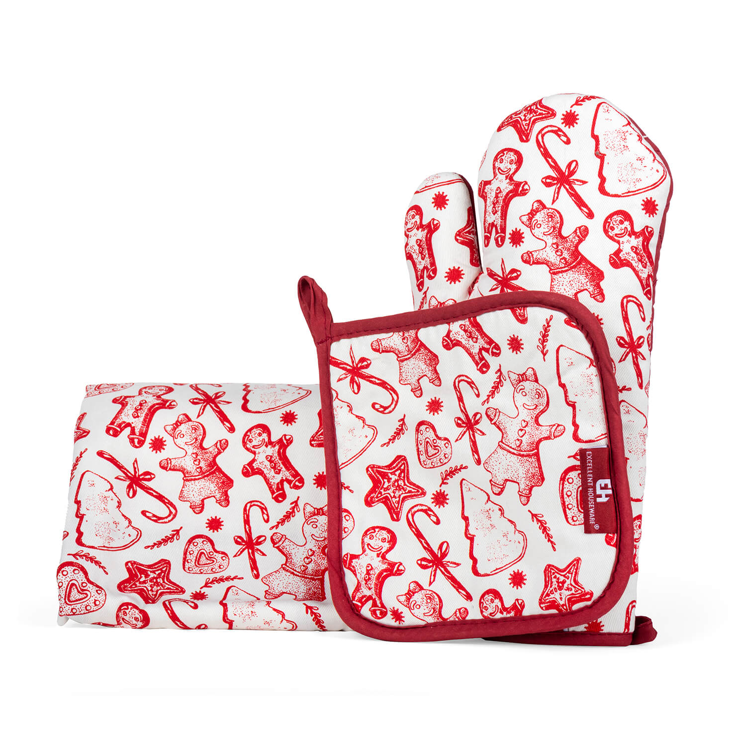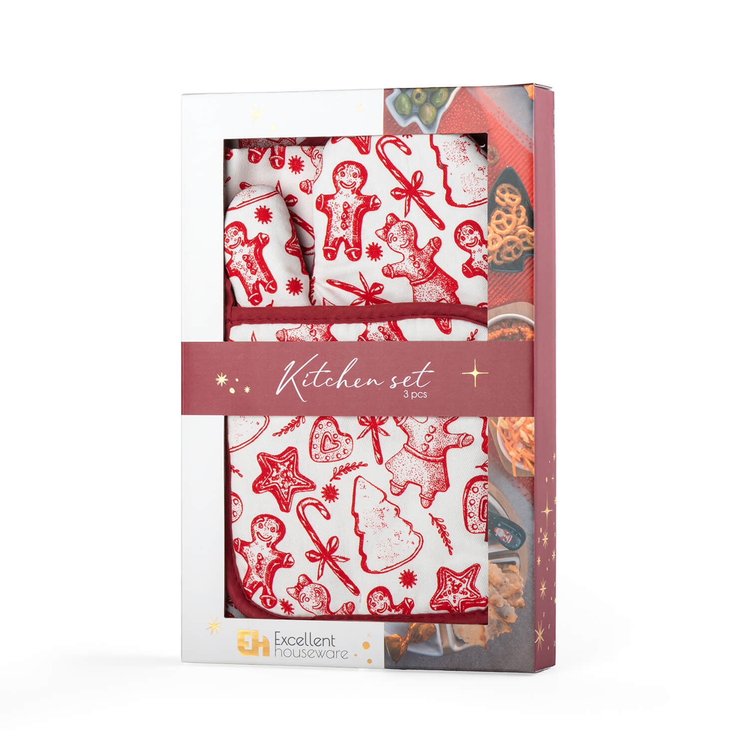 Σετ κουζίνας λευκού χρώματος, με κόκκινες χριστουγεννιάτικες λεπτομέρειες