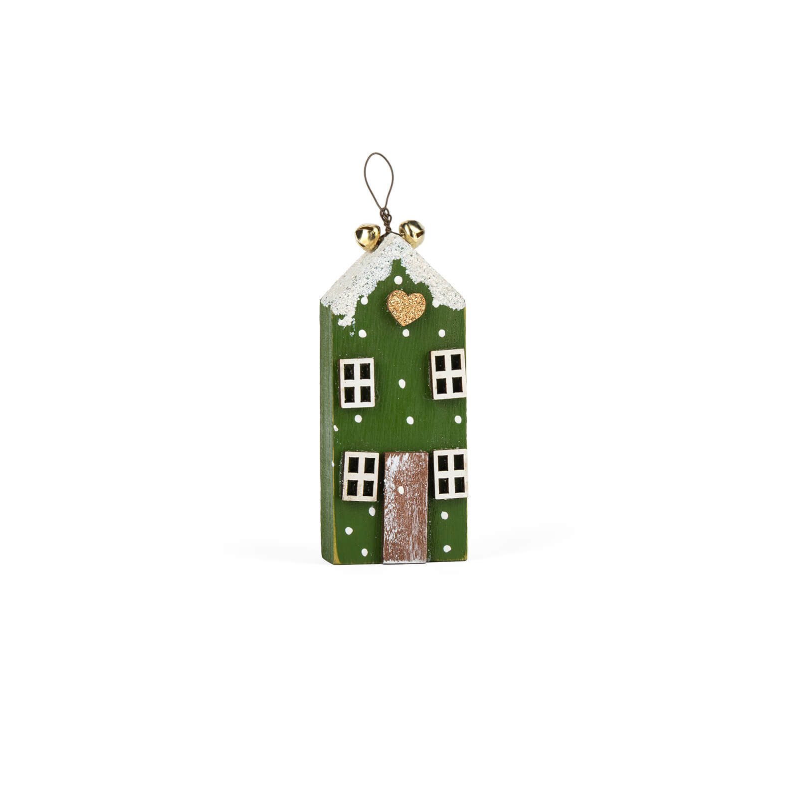 Ξύλινο στολίδι σπιτάκι, σε πράσινο χρώμα.