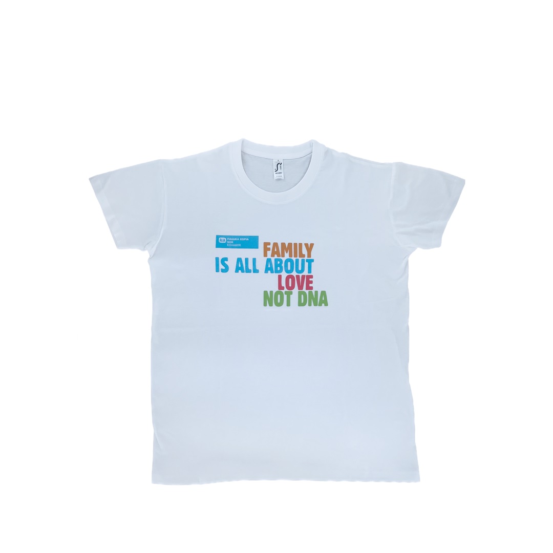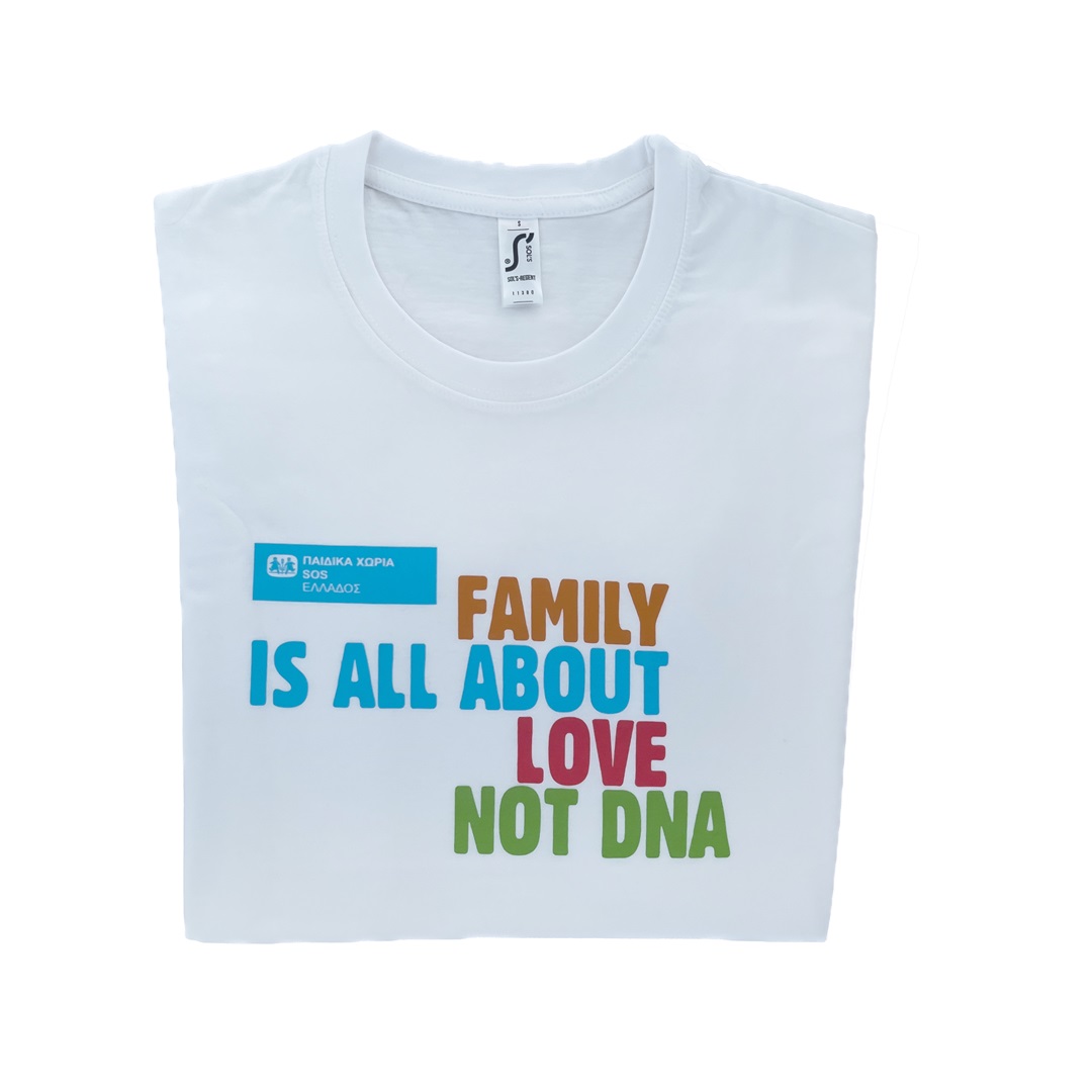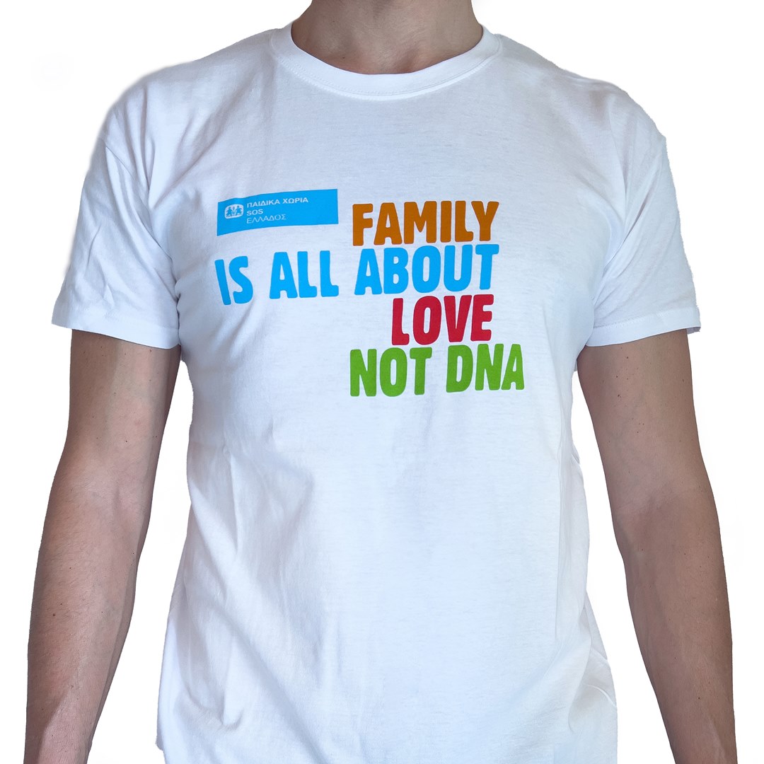 Βαμβακερό μπλουζάκι με μήνυμα “Family is all about love, not DNA”